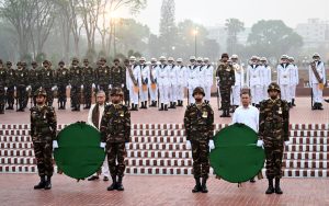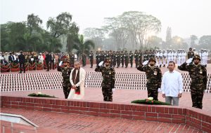 এর আগে রাষ্ট্রপতি ও প্রধানমন্ত্রী নির্ধারিত সময় পৌঁছে পুষ্পস্তবক অর্পণ করেন এবং বীর শহীদদের প্রতি বিনম্র শ্রদ্ধা জানান।